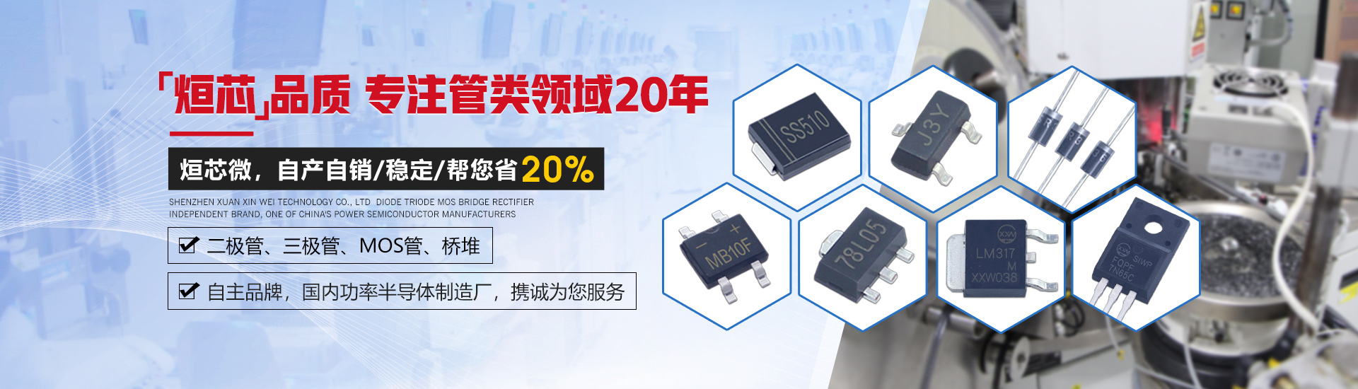 深圳市烜芯微科技有限公司是一家集研發(fā)、生產(chǎn)、銷售于一體,專注于二極管、三極管,MOS管、橋堆等功率半導(dǎo)體領(lǐng)域發(fā)展的企業(yè)。采用國(guó)際領(lǐng)先的GPP芯片生產(chǎn)工藝及一心多Die高精密制造工藝,擁有功率半導(dǎo)體器件工程實(shí)驗(yàn)室,全自動(dòng)高精密生產(chǎn)設(shè)備,產(chǎn)品層層把控,全程可追溯,保障了每只產(chǎn)品的卓越品質(zhì)。 產(chǎn)品封裝包括SMA,SMAF,SMB,SMBF,SMC,SOD-123,SOD-123FL,SOD-323,SOD-323FL,SOD-523,SOD-723,SOT-23,SOT-89,SOT23-3L,SOT23-5L,SOT23-6L,SOT-223,SOT-523,SOT-723,DO-41,DO-15,DO-27,DO-35,R-1,R-6,LL-34,LL-41,TO-277,TO-92,TO-92S,TO-92L,TO-126,TO-251,TO-252,TO-262,TO-263,TO-220,TO-220F,TO-247,TO-3P,TO-264,MBS,MBF,MBM,ABS,UMB,UMSB,DB,DBS,D3K,KBP,GBP,GBU,GBL,GBJ,KBL,KBU,KBJ,KBPC,KBPC6,KBPC8,KBPC-W,DNF,TSSOP-8,TSSOP-16,SOP-4,SOP-6,SOP-8,SOP-10,SOP-14,SOP-16,DIP-4,DIP-6,DIP-8,DIP-10,DIP-14,DIP-16,月產(chǎn)各封裝達(dá)6億只。 公司通過了ISO14001環(huán)境管理體系認(rèn)證,產(chǎn)品均獲得了ISO9001質(zhì)量體系認(rèn)證、UL、SGS等認(rèn)證,符合歐盟最新RoHs指令。擁有和致力于烜芯微/XXW自主品牌產(chǎn)品的推廣,提供技術(shù)支持,選型替換,cost down方案及擁有專業(yè)的生產(chǎn)管理團(tuán)隊(duì)和銷售團(tuán)隊(duì),保證了供貨穩(wěn)定及售前選型服務(wù)等問題。 公司產(chǎn)品廣泛應(yīng)用于開關(guān)電源、適配器、逆變器、控制器、汽車電子、家用電器、通訊設(shè)備、無線充、鋰電池保護(hù)板、驅(qū)動(dòng)電機(jī)、安防警報(bào)、太陽能光伏產(chǎn)業(yè)等多個(gè)領(lǐng)域。取得了國(guó)內(nèi)外眾多品牌大廠的認(rèn)可與合作,我們將堅(jiān)持奉行“烜芯品質(zhì),誠信經(jīng)營(yíng),合作共贏”為公司經(jīng)營(yíng)理念!竭誠為新老客戶提供優(yōu)質(zhì)的產(chǎn)品及服務(wù)。
